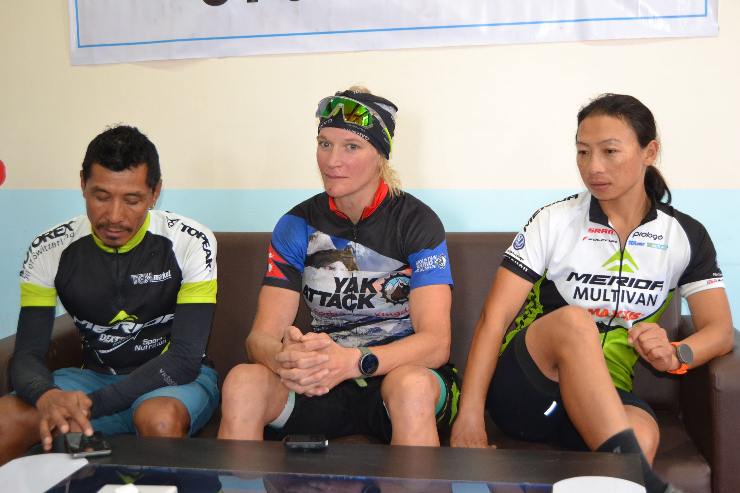 त्यहाँबाट सव्रिना पैदल हिँडेर सगरमाथा आरोहणका लागि आधारशिविर तर्फ लाग्नेछिन् । हर्क र लक्ष्मी फर्किनेछन् । अन्तराष्ट्रिय जुडो संघकी जलवायु परिवर्तन दुत समेत रहेकी सव्रिना जुडो खेलकी ओलम्पिक विजेता हुन् । ४२ वर्षिया उनी जेठी जुडो च्याम्पियन समेत हुन् । दिगादेखि सोलुखुम्बुसम्म करिब १ हजार भन्दा बढी किलोमिटर दुरी साईकलमा पार गर्ने र त्यसपछि बिना अक्सिजन सगरमाथा आरोहणको लागि जाने उनले बताइन् ।